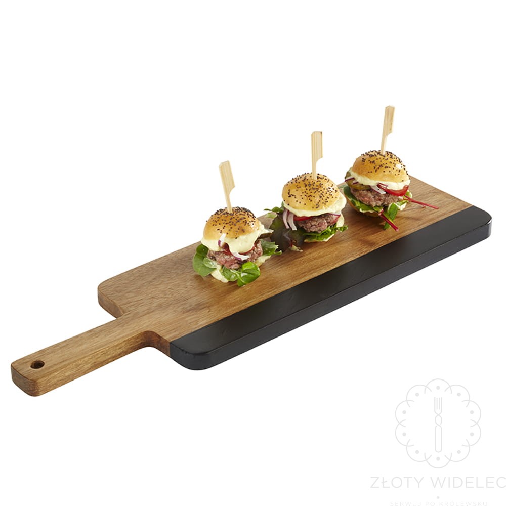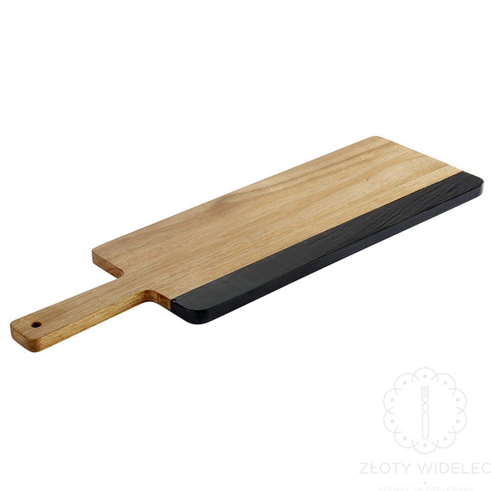 Deska drewniana do serwowania dań z uchwytem akacja 36,5x 15 cm z tablicą na kredę