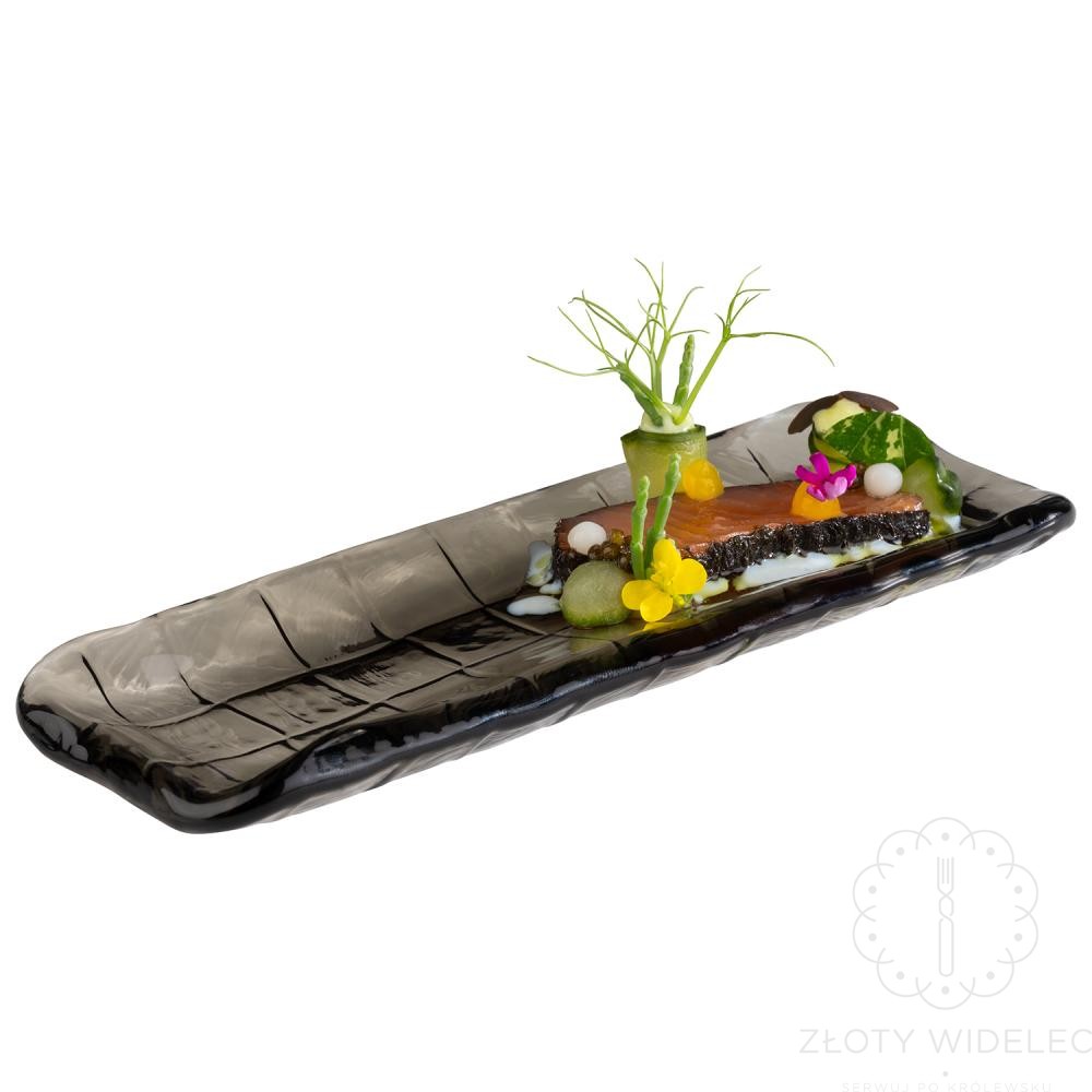 Talerz do sushi TAKASHI w kolorze French Grey to stylowa deska serwisowa zaprojektowana z myślą o estetycznym podawaniu potraw kuchni japońskiej. Wykonana z wysokiej jakości szkła, wyróżnia się eleganckim, subtelnym odcieniem szarości, który doskonale podkreśla wygląd serwowanych dań.