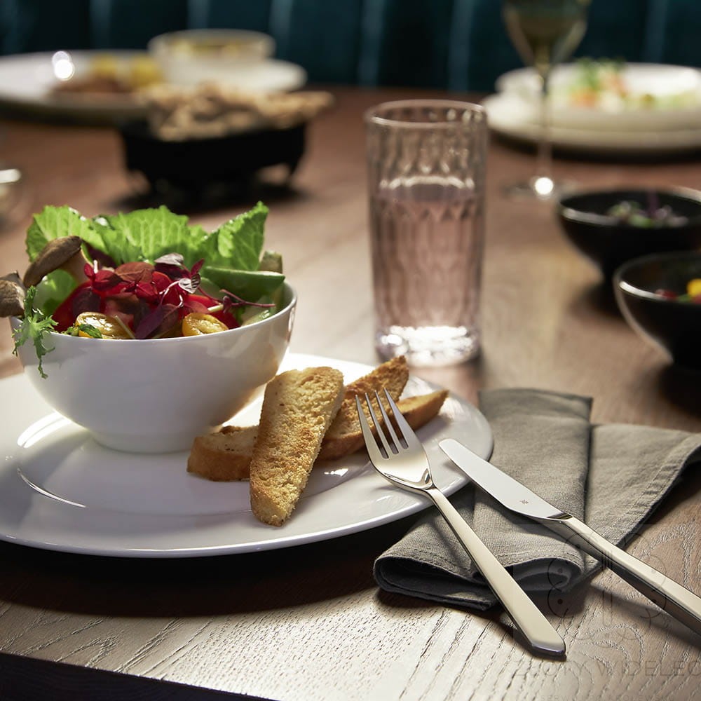 Wykonane z wysokiej jakości stali nierdzewnej Cromargan® 18/10, noże są odporne na rdzę, kwasy spożywcze i zarysowania. Polerowana powierzchnia podkreśla ich elegancję, a możliwość mycia w zmywarce sprawia, że są praktyczne i łatwe w pielęgnacji – również przy intensywnym użytkowaniu.