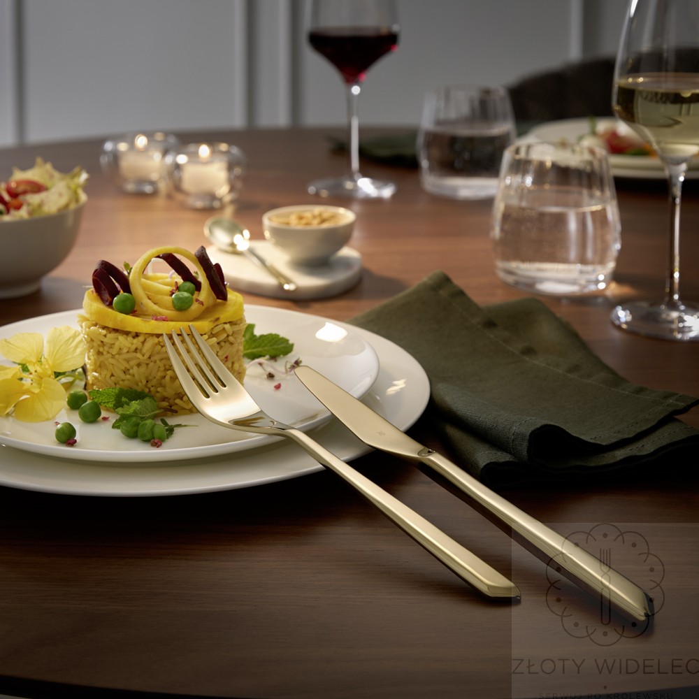 WMF Shades Pale Gold to kolekcja, która łączy odważne, nowoczesne wzornictwo z luksusowym wykończeniem w subtelnym złocie. Solidna grubość stali Cromargan® i dopracowane detale czynią z niej idealny wybór dla osób ceniących zarówno estetykę, jak i trwałość.