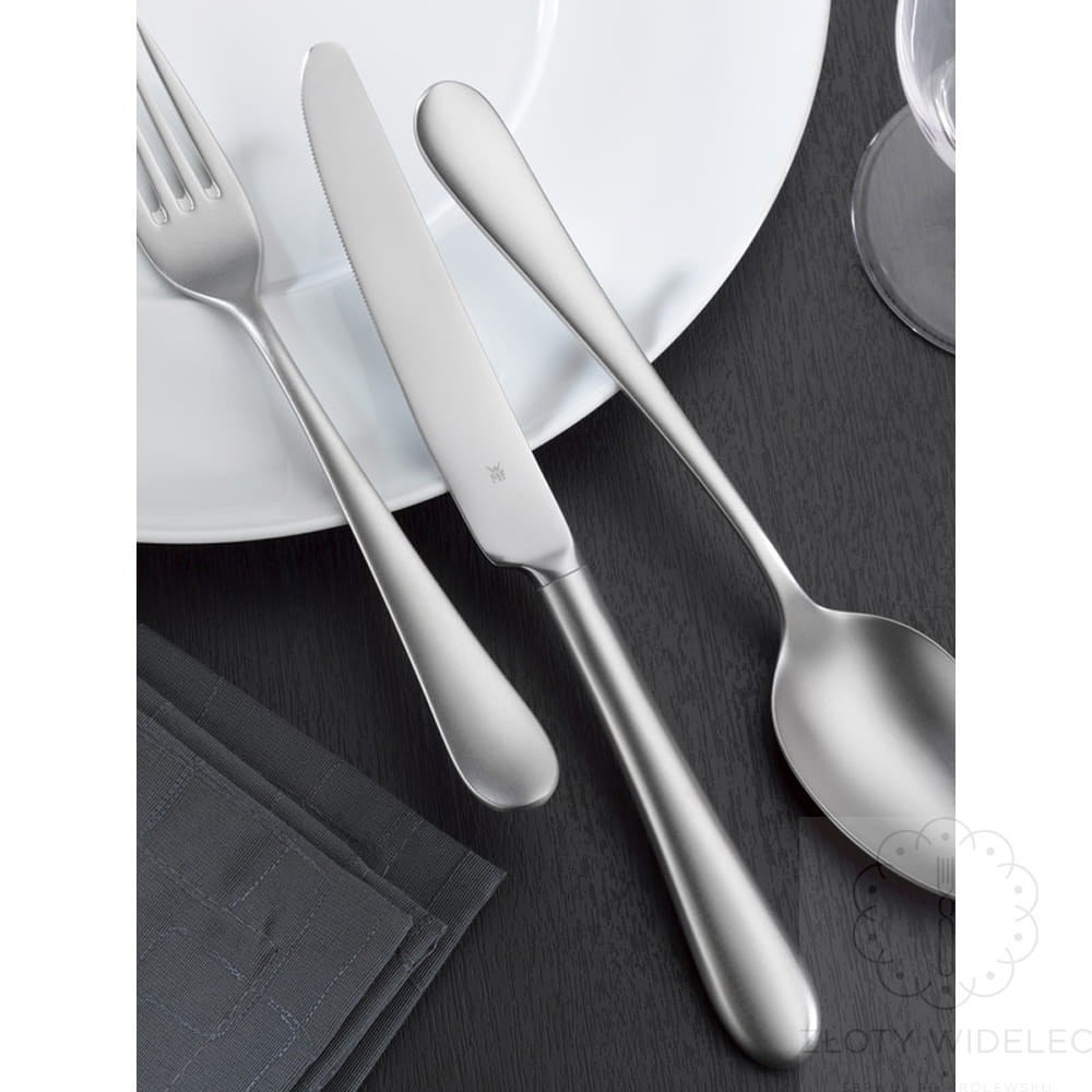Zestaw sztućców WMF Signum Brushed to nowoczesna interpretacja klasycznej elegancji. Charakterystyczne dla kolekcji delikatnie zaokrąglone uchwyty połączono tu z subtelnym, szczotkowanym wykończeniem, które nadaje powierzchni matowego charakteru i wyrazistych struktur. Dzięki temu sztućce zyskują dynamiczny wygląd i doskonale komponują się zarówno z minimalistycznymi, jak i tradycyjnymi aranżacjami stołu.