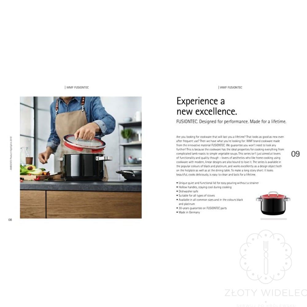 WMF jest marką LUKSUSOWĄ. Firma od 1853 roku specjalizuje się w produkcji wysokiej jakości sztućców, galanterii stołowej, artykułów kuchennych dla gospodarstwa domowego jak i profesjonalnej gastronomii.