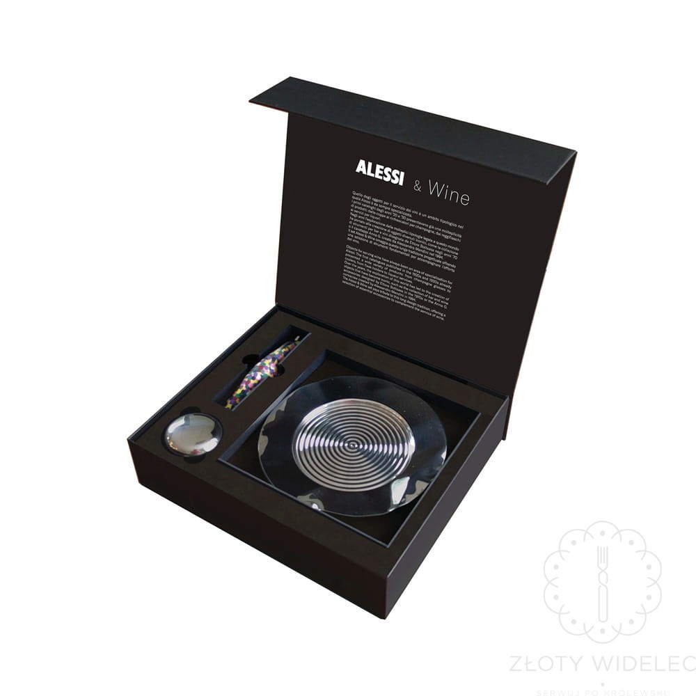 Zestaw został zaprojektowany z dbałością o detale, charakterystyczną dla marki Alessi. Jego centralnym elementem jest kultowy korkociąg Parrot projektu Alessandro Mendiniego, którego forma inspirowana papugą nadaje całości unikalny, dekoracyjny wygląd
