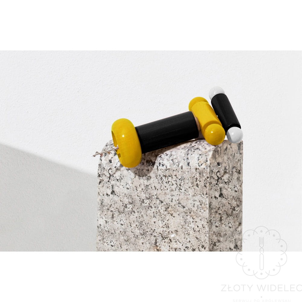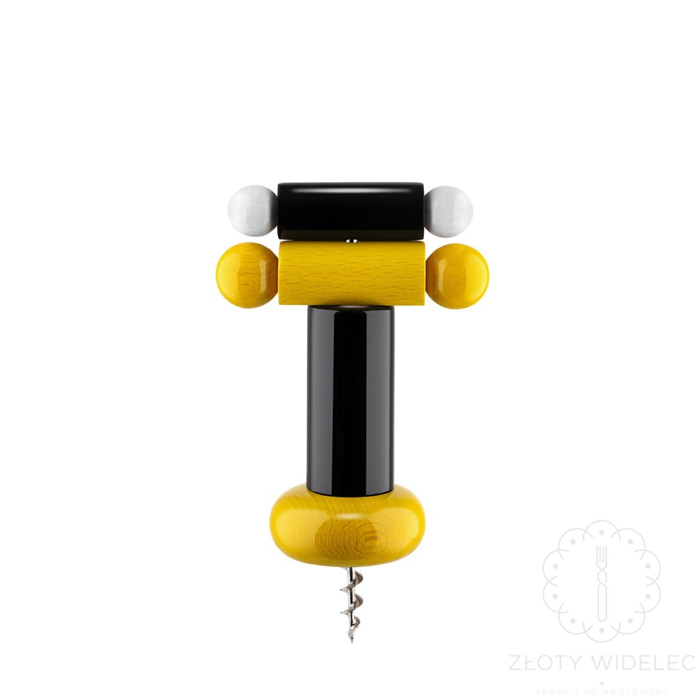 Produkt został zaprojektowany z dbałością o detale, charakterystyczną dla marki Alessi. Jego geometryczna, nowoczesna forma inspirowana estetyką postmodernizmu nadaje mu unikalny, dekoracyjny wygląd, który wyróżnia go na tle klasycznych korkociągów.
