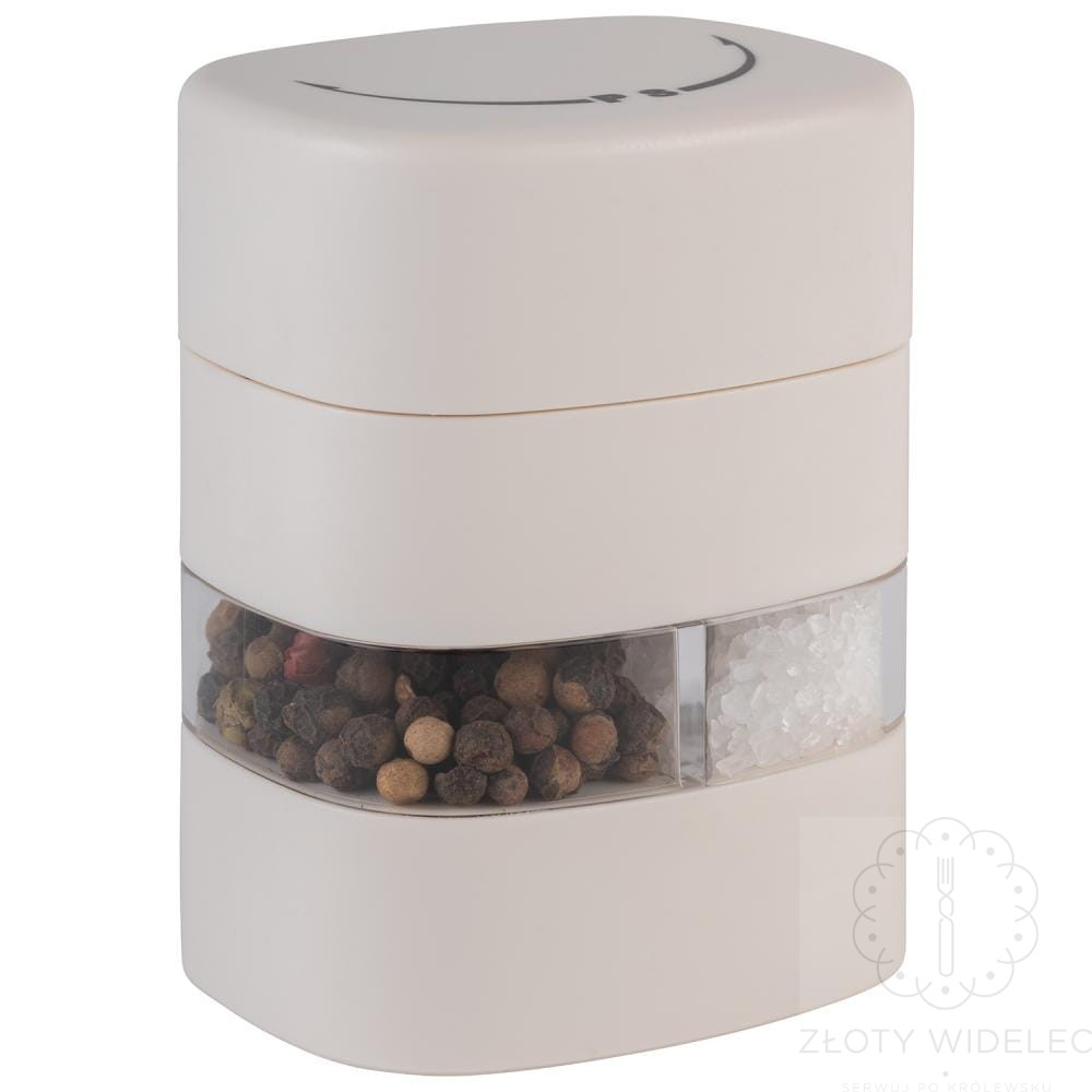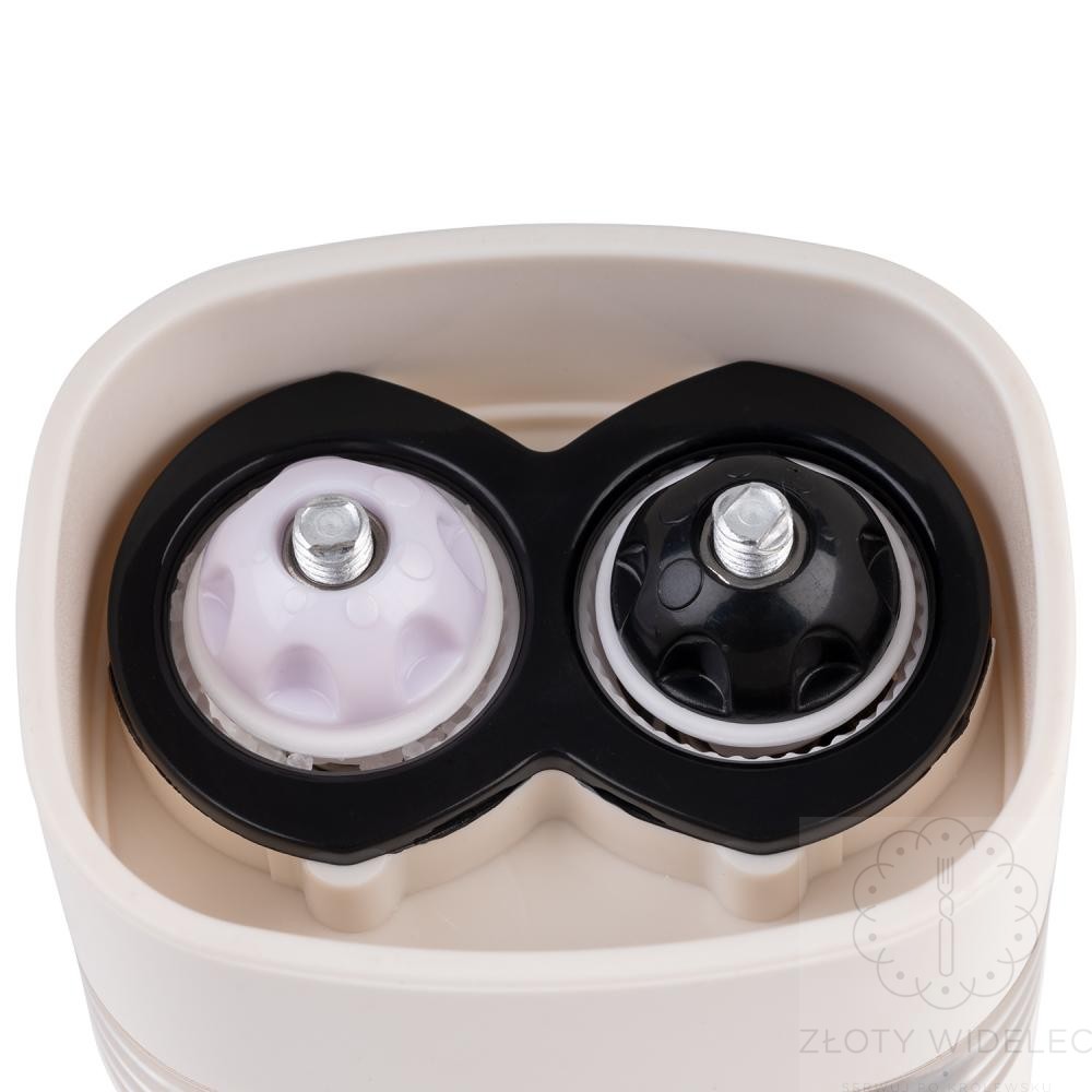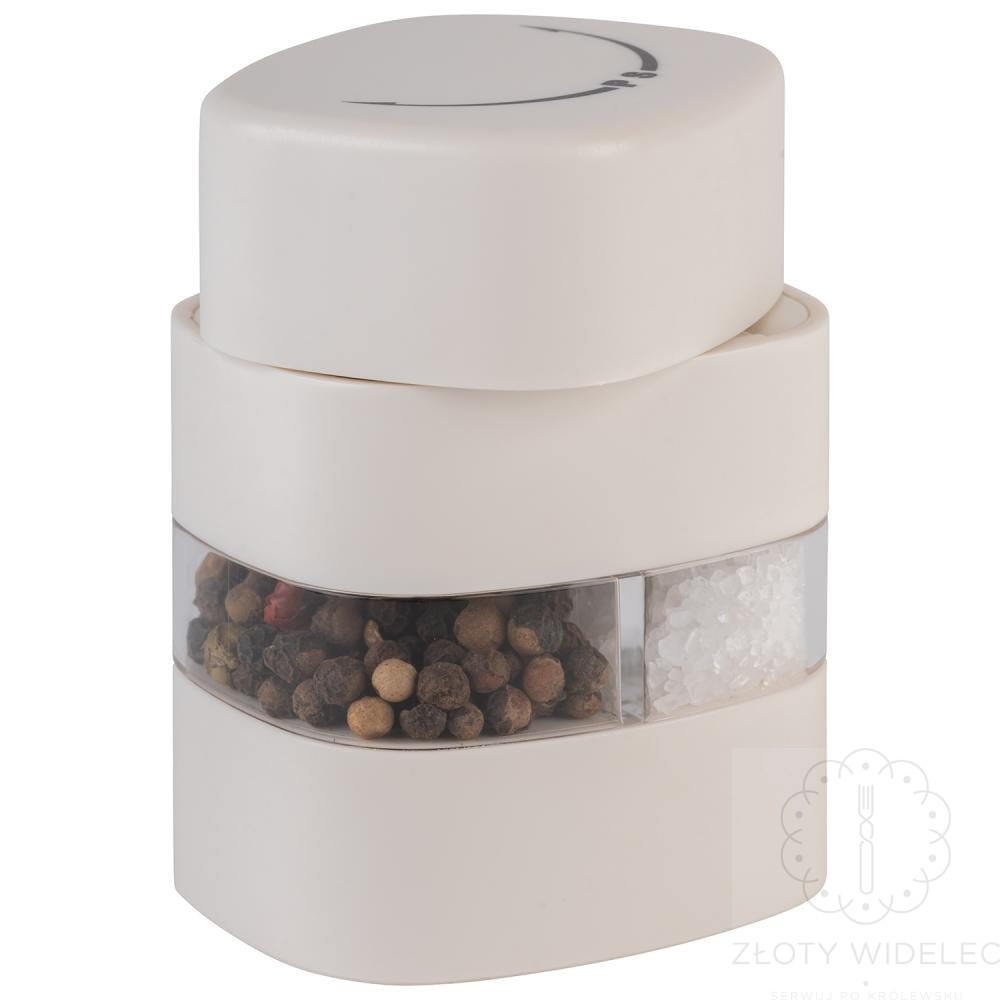Biały młynek do soli i pieprzu 2 w 1 BOOGIE – ceramiczny mechanizm, regulacja mielenia