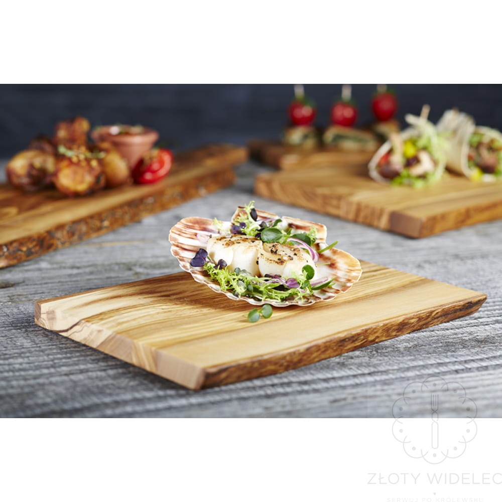 Deska do serwowania wykonana z wysokogatunkowego drewna oliwnego. Bardzo pomysłowy sposób prezentacji dań. Gwarancja 2 lata. Produkt Niemiecki.