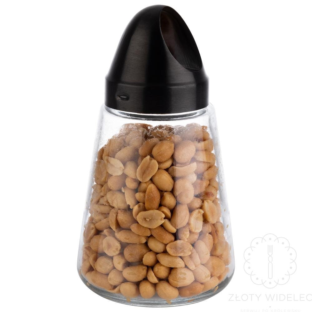 Przezroczysty pojemnik wykonany ze szkła pozwala łatwo kontrolować ilość zawartości, a czarne elementy ze stali nierdzewnej nadają całości nowoczesny i elegancki wygląd. Dozownik świetnie sprawdzi się zarówno w kuchni, jak i na stole podczas spotkań z gośćmi.