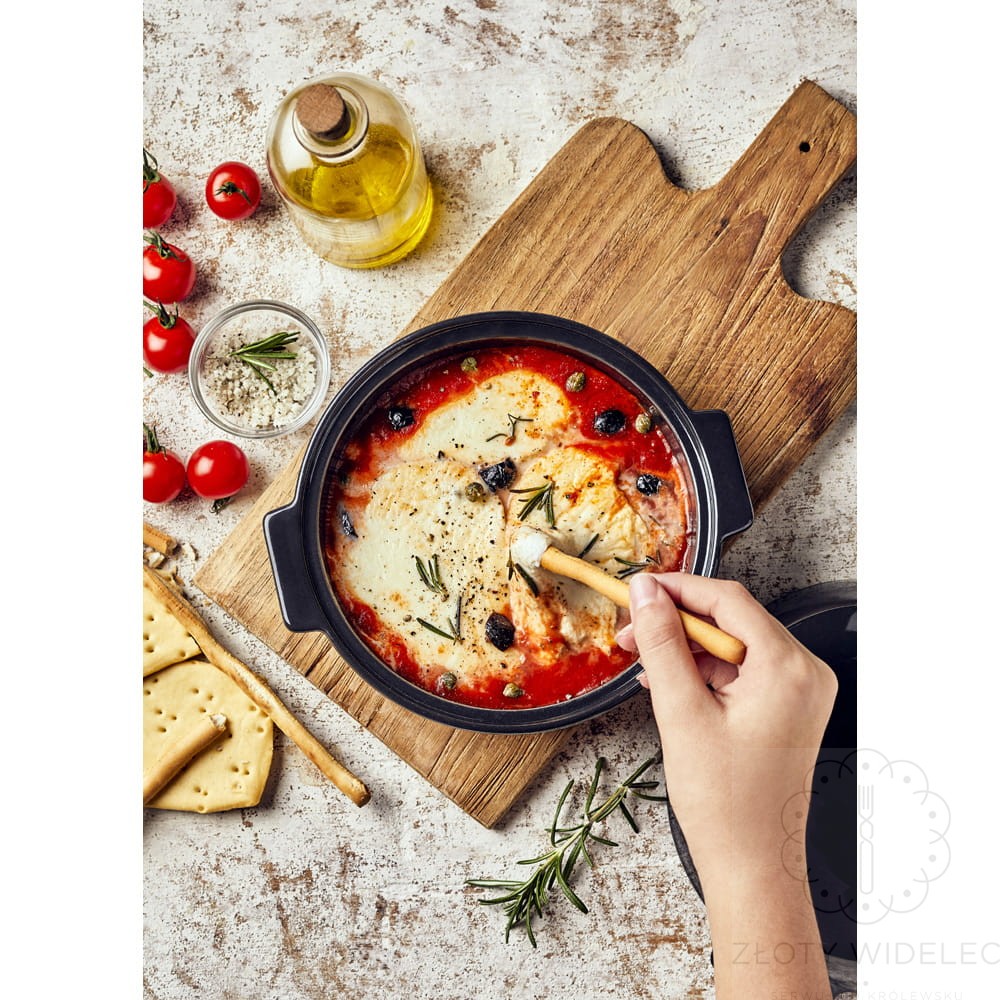 Wykonane z wysokiej jakości ceramiki HR® (High Resistance), naczynie równomiernie rozprowadza i długo utrzymuje ciepło, co przekłada się na perfekcyjne zapiekanie — jajka są delikatne w środku i lekko przyrumienione na zewnątrz, a ser i dodatki pięknie się integrują. Dzięki wysokiej odporności ceramiki HR® możesz bez obaw umieścić naczynie w piekarniku, a po zakończeniu pieczenia umyć je w zmywarce, co zdecydowanie ułatwia codzienne użytkowanie.
