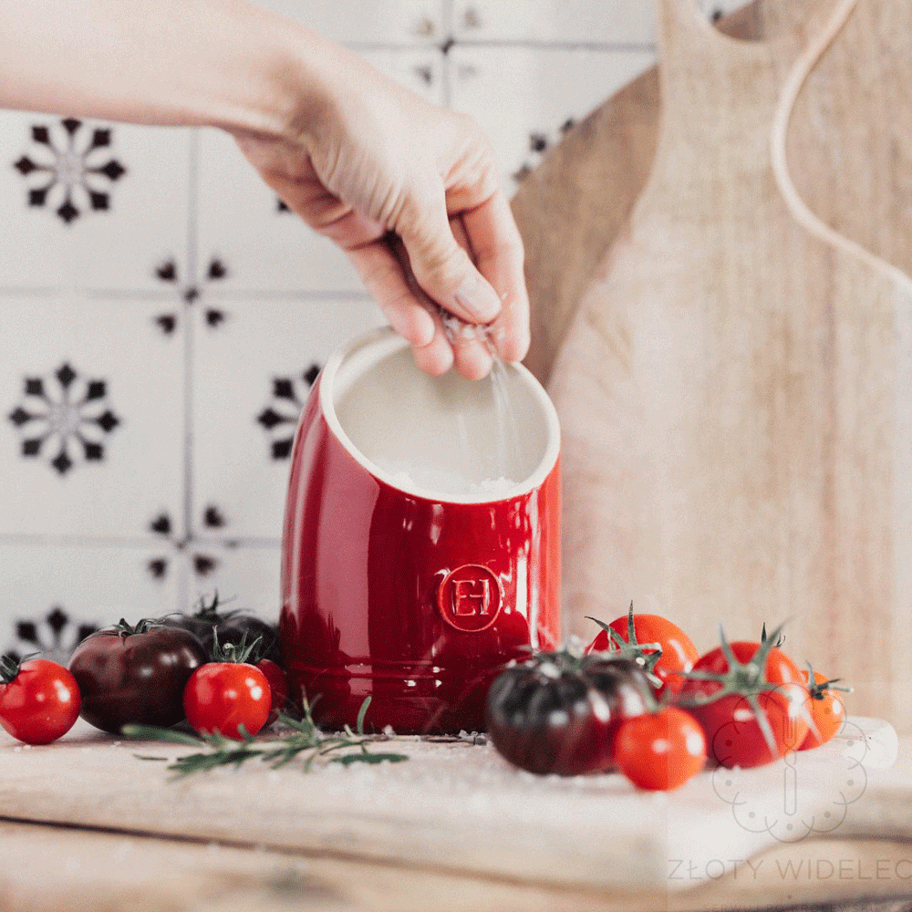Poznaj elegancki pojemnik kuchenny na sól Emile Henry o pojemności 550 ml w klasycznym czerwonym kolorze. To stylowe i praktyczne akcesorium kuchenne, które pozwala przechowywać sól zawsze w zasięgu ręki podczas gotowania. Dzięki ponadczasowemu designowi pojemnik pięknie prezentuje się na blacie kuchennym i stanowi dekoracyjny element wyposażenia kuchni.
