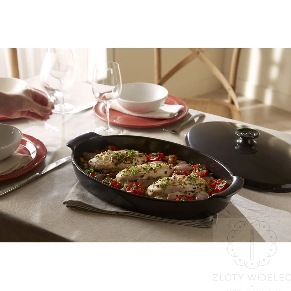 Emile Henry – czarny garnek do pieczenia ryb 42 × 25 cm
