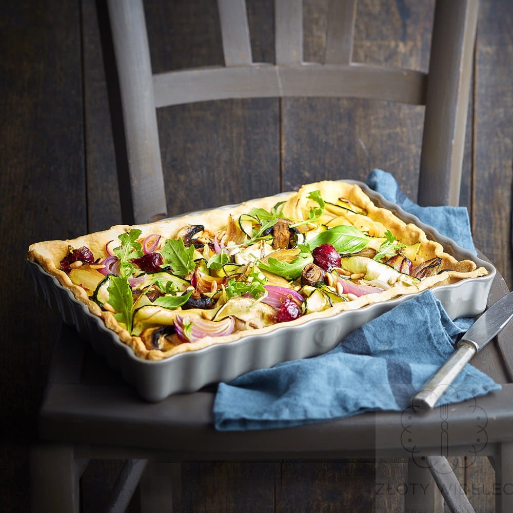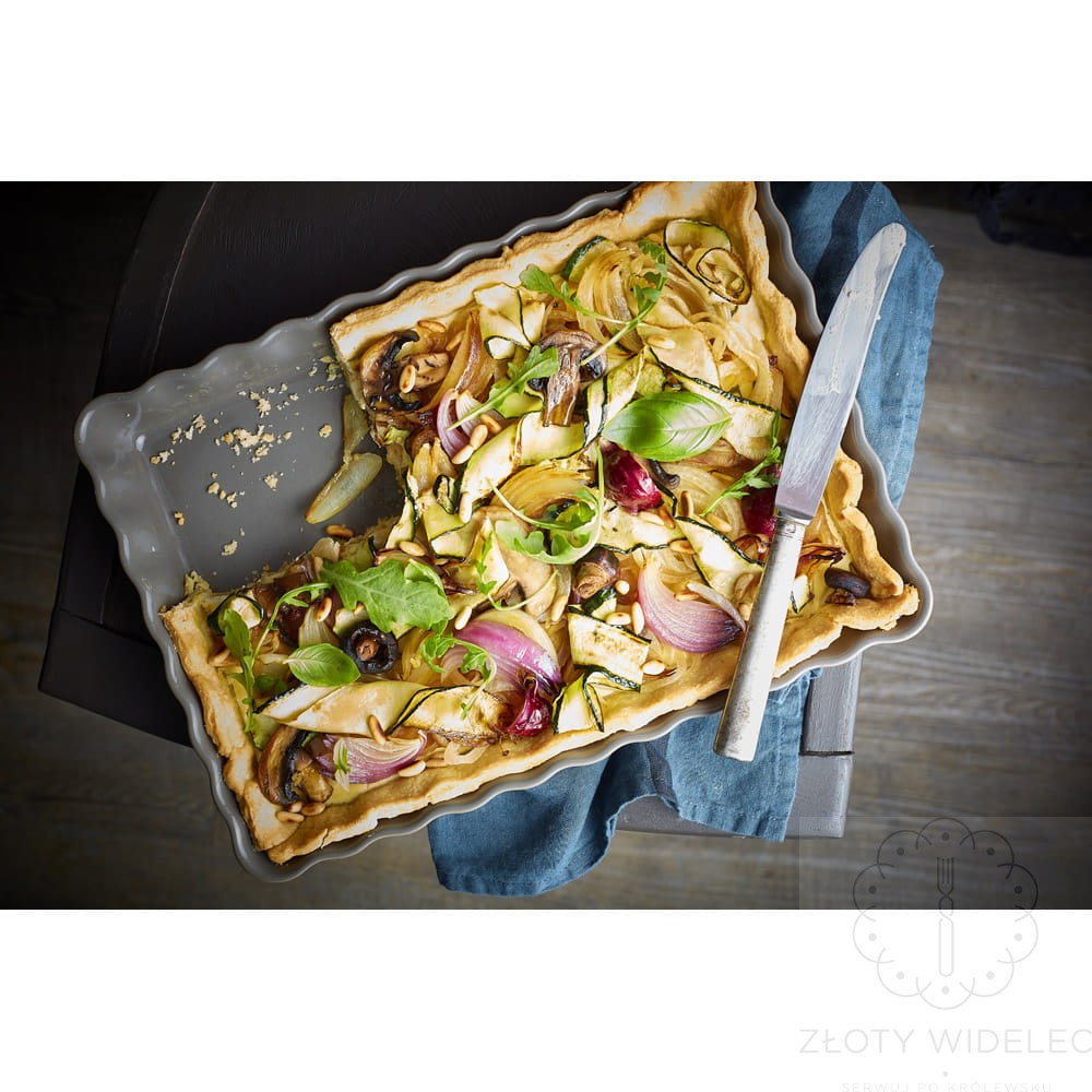 Francuskie naczynie ceramiczne, forma do wypieku tarty. Naczynie jest wykonane ze specjalnej, ogniotrwałej ceramiki HR (żaroodporność do 270 stopni C) i jest przeznaczona do stosowania zwłaszcza w piekarnikach. Po wstawieniu formy do piekarnika temperatura w niej wzrasta stopniowo, a ciepło jest rozprowadzane równomiernie. Dzięki temu ciasto jest doskonałe wypieczone i ma wspaniały smak i aromat. Forma ma idealnie gładką powierzchnie, więc ciasto nie przywiera i można je łatwo wyjąć z formy. Gotowy wypiek można podać w naczyniu bezpośrednio na stół - pozwala na to zarówno estetyka wykonania i kolorystyka, jak i wyjątkowe właściwości ceramiki (długo utrzymuje ciepło). Wysoka odporność szkliwa pozwala kroić wypiek w formie, bez ryzyka porysowania lub uszkodzenia.