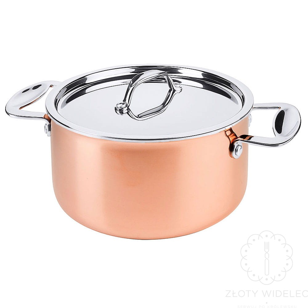 Garnek miedziany ciężki, szybko nagrzewający się i długo utrzymujący cieplo o średnicy 20cm. Stosowany przez profesjonalnych szefów kuchni.