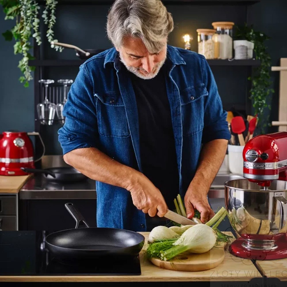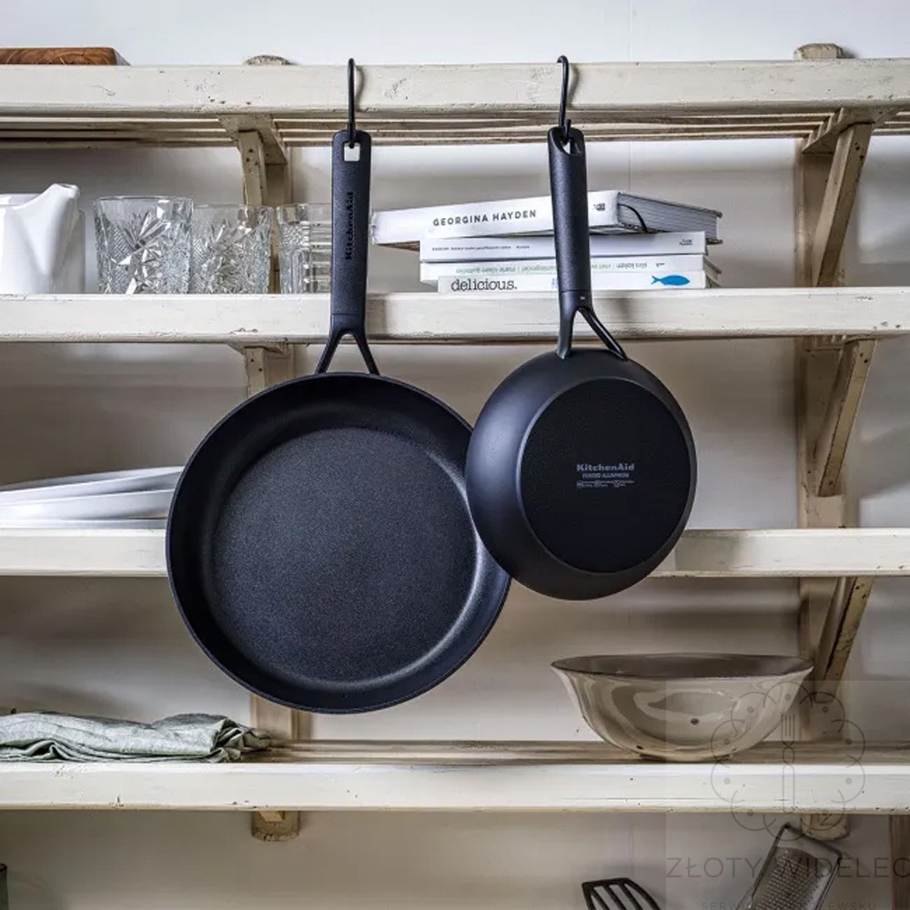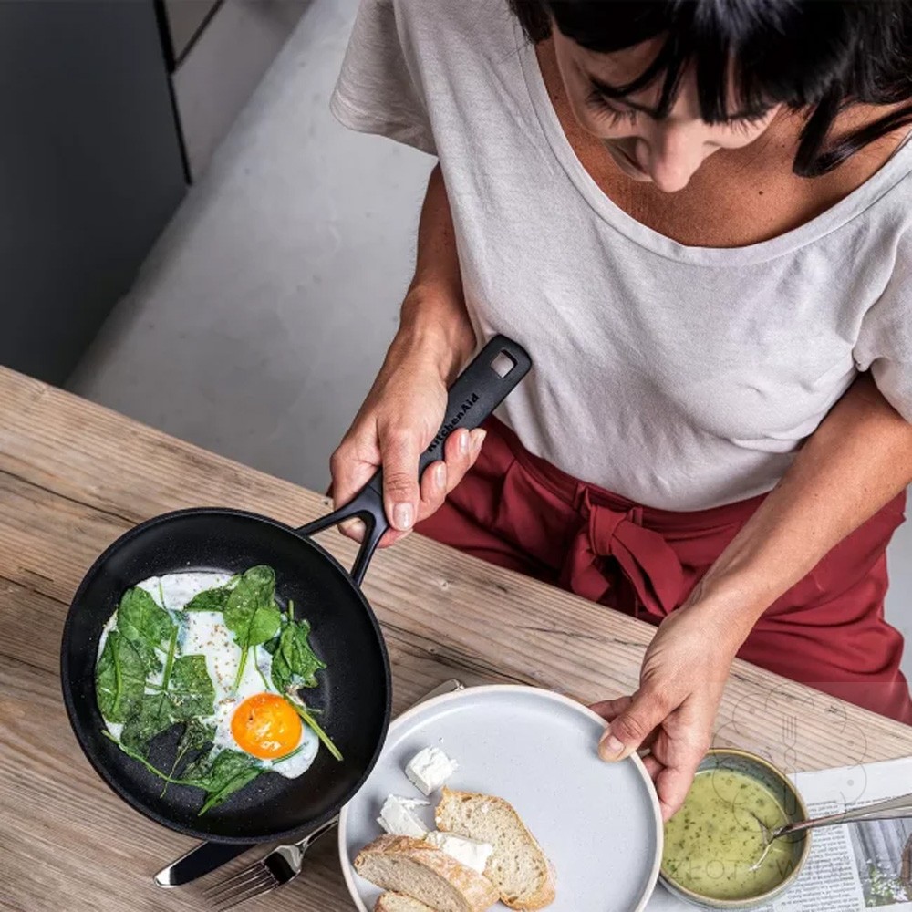 Seria KitchenAid Classic Forged Ceramic to kolekcja naczyń kuchennych zaprojektowanych z myślą o trwałości i codziennym użytkowaniu. Produkty z tej linii wykonane są z kutego aluminium i wyposażone w ceramiczną powłokę nieprzywierającą, która ułatwia smażenie i czyszczenie.