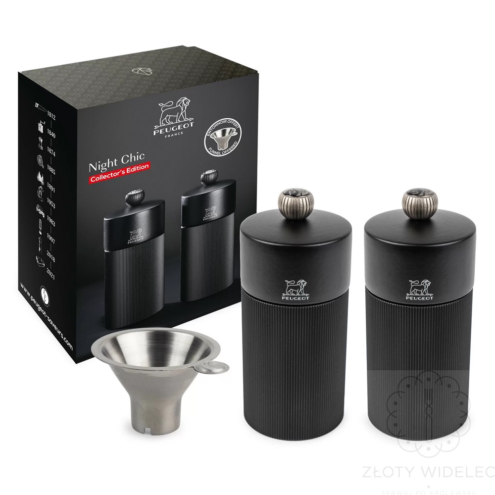 Peugeot Night Chic – Zestaw młynków do soli i pieprzu 12 cm z lejkiem