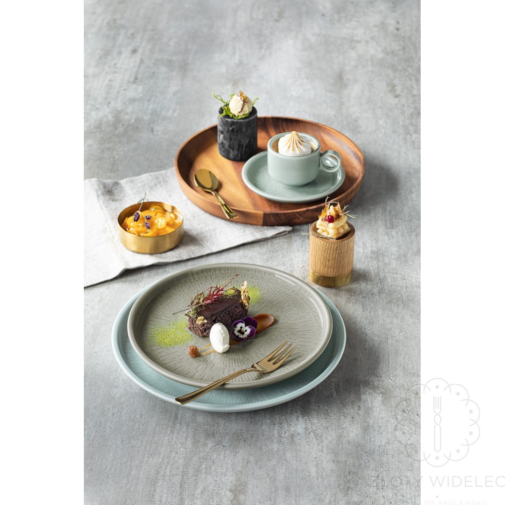 Podstawka o średnicy 16,5 cm (165 mm) uzupełnia filiżankę, tworząc spójną, elegancką kompozycję, która doskonale prezentuje się zarówno w restauracyjnej aranżacji, jak i w zaciszu domowej kuchni.