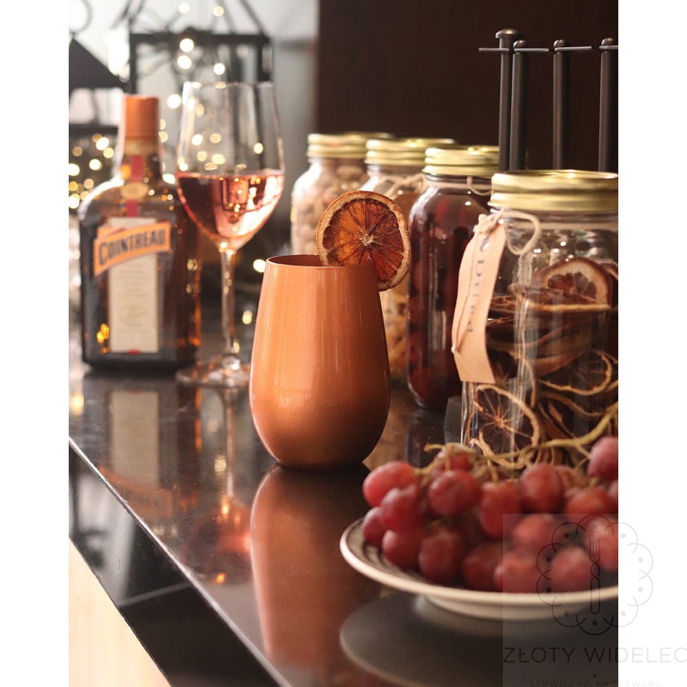 Stolzle Lausitz Olympic Bronze 465 ml to eleganckie miedziane szklanki premium, które łączą w sobie nowoczesny charakter, luksusowe wykończenie i funkcjonalność na co dzień. Ich metaliczny odcień brązu z miedzianym połyskiem wnosi do aranżacji stołu ciepło, elegancję i wyjątkowy styl.