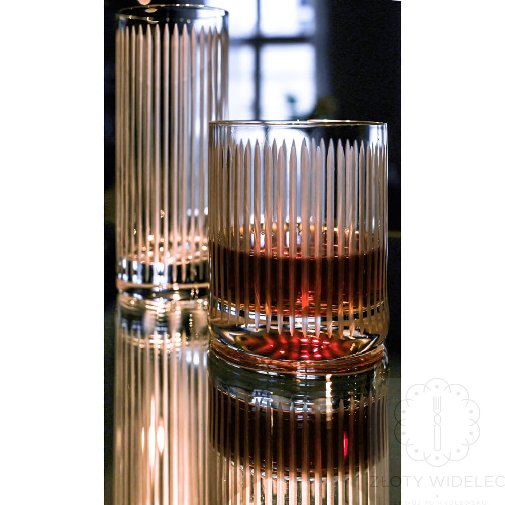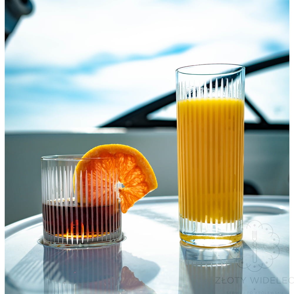 Seria SOHO z prestiżowej linii New York Bar to propozycja dla tych, którzy cenią wyjątkowy design i wyrafinowaną estetykę. Charakterystyczne pionowe szlify o diamentowym układzie nadają szklankom trójwymiarowy efekt, który pięknie odbija światło i podkreśla barwę serwowanych napojów.