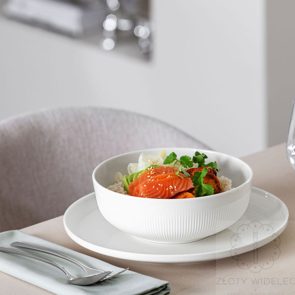 Dzięki średnicy 20 cm i pojemności 1000 ml, miska idealnie sprawdzi się do serwowania sałatek, makaronów, deserów, owoców czy dodatków do dań głównych. Wykonana z porcelany Premium Bone Porcelain, łączy trwałość, lekkość i elegancki wygląd. Jej minimalistyczny design sprawia, że doskonale komponuje się z pozostałymi elementami kolekcji Afina, tworząc spójną, luksusową zastawę stołową.