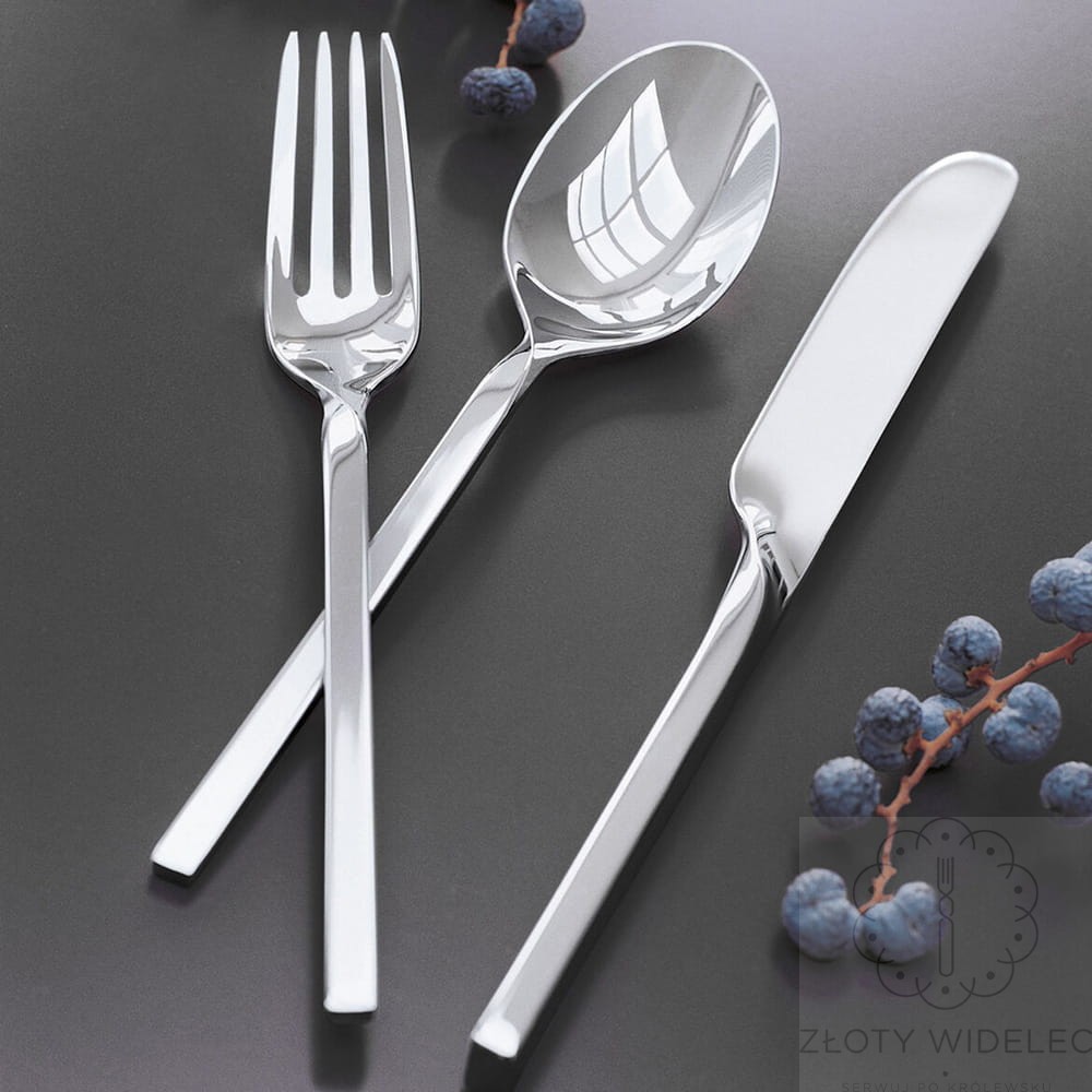 Wszystkie elementy wykonane są z wysokiej jakości stali nierdzewnej, dzięki czemu zestaw jest trwały, odporny na korozję i neutralny w smaku. Smukłe, perfekcyjnie wyważone formy oraz nowoczesny połysk sprawiają, że sztućce z tej serii prezentują się niezwykle stylowo i wygodnie leżą w dłoni. To pełny komplet dla 6 osób, obejmujący zarówno sztućce podstawowe, jak i deserowe.