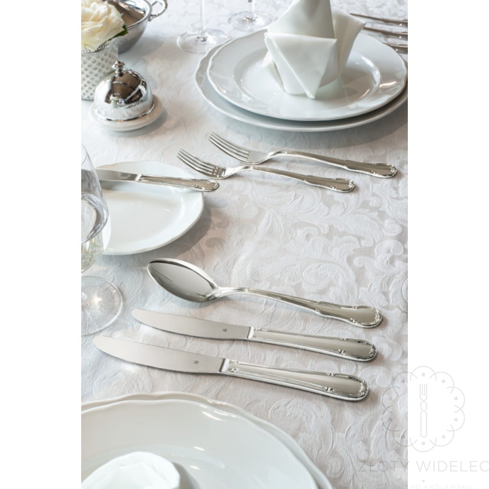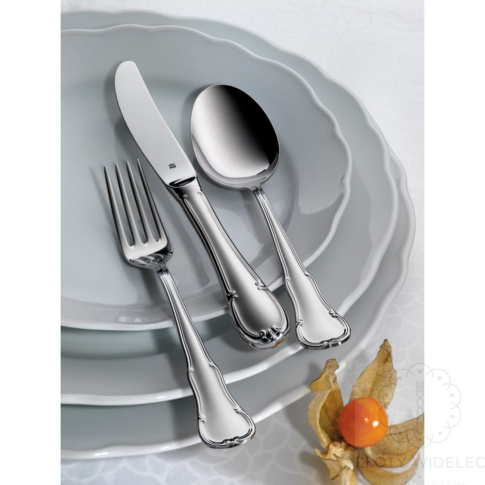 WMF Barock to zestaw sztućców, który łączy tradycję, elegancję i najwyższą jakość wykonania. Zdobione detale i solidna forma sprawiają, że kolekcja ta stanowi prawdziwą ozdobę stołu – doskonałą zarówno do codziennych posiłków w stylowej oprawie, jak i do wyjątkowych, świątecznych okazji.