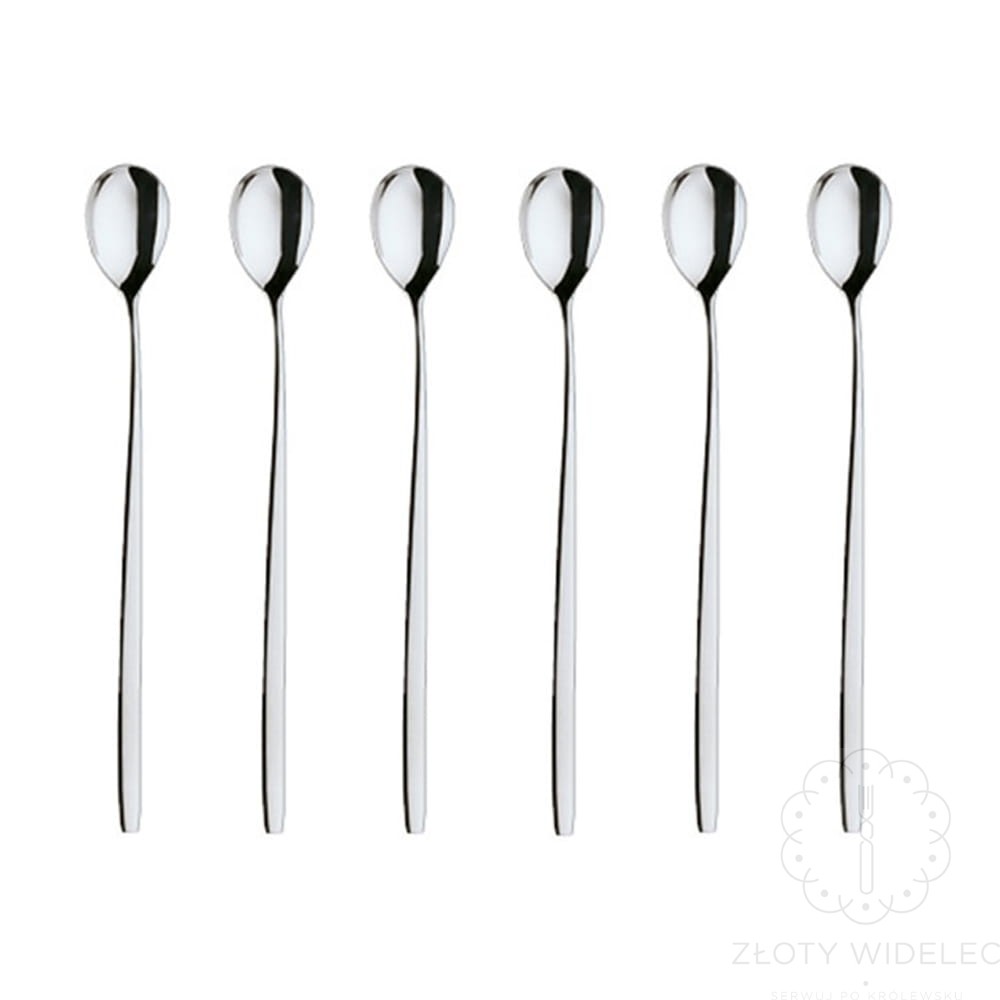 Łyżeczki WMF Bistro o długości 22 cm to praktyczny komplet zaprojektowany specjalnie do serwowania kawy mrożonej, deserów lodowych oraz deserów w wysokich szklankach i pucharkach. Dzięki wydłużonej formie sięgają dna wysokich naczyń, co zapewnia maksymalną wygodę podczas mieszania i delektowania się deserami.