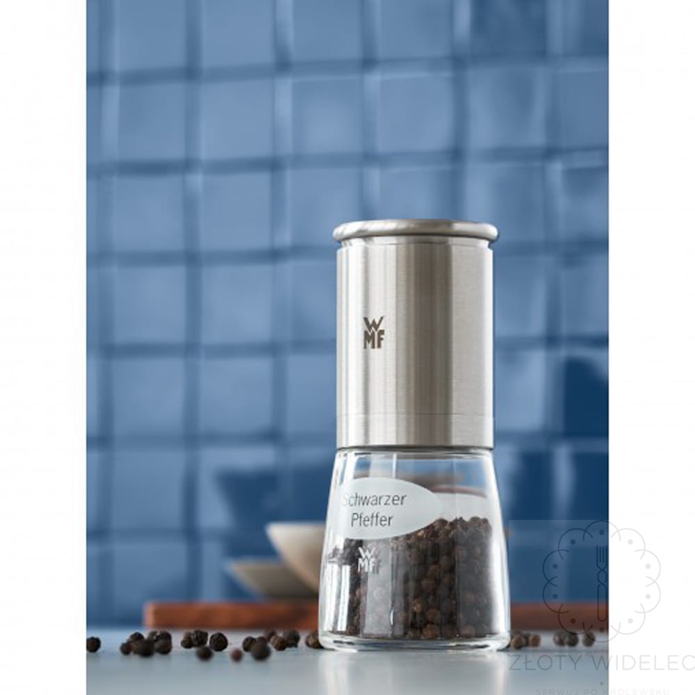 WMF De Luxe to kompaktowy i elegancki młynek ręczny, stworzony z myślą o wygodnym i świeżym mieleniu pieprzu, soli oraz innych przypraw. Idealnie sprawdzi się zarówno w kuchni, jak i podczas serwowania dań przy stole.
