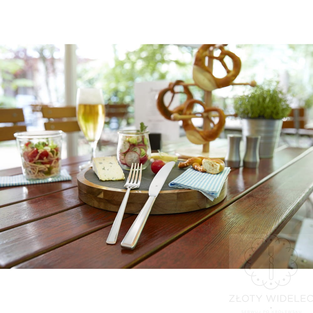 Każdy element zestawu wykonano z opatentowanej stali nierdzewnej Cromargan® 18/10, odpornej na rdzę, kwasy spożywcze i zarysowania. Polerowana powierzchnia nadaje sztućcom elegancki połysk, a możliwość mycia w zmywarce gwarantuje wygodę i higienę użytkowania na co dzień.