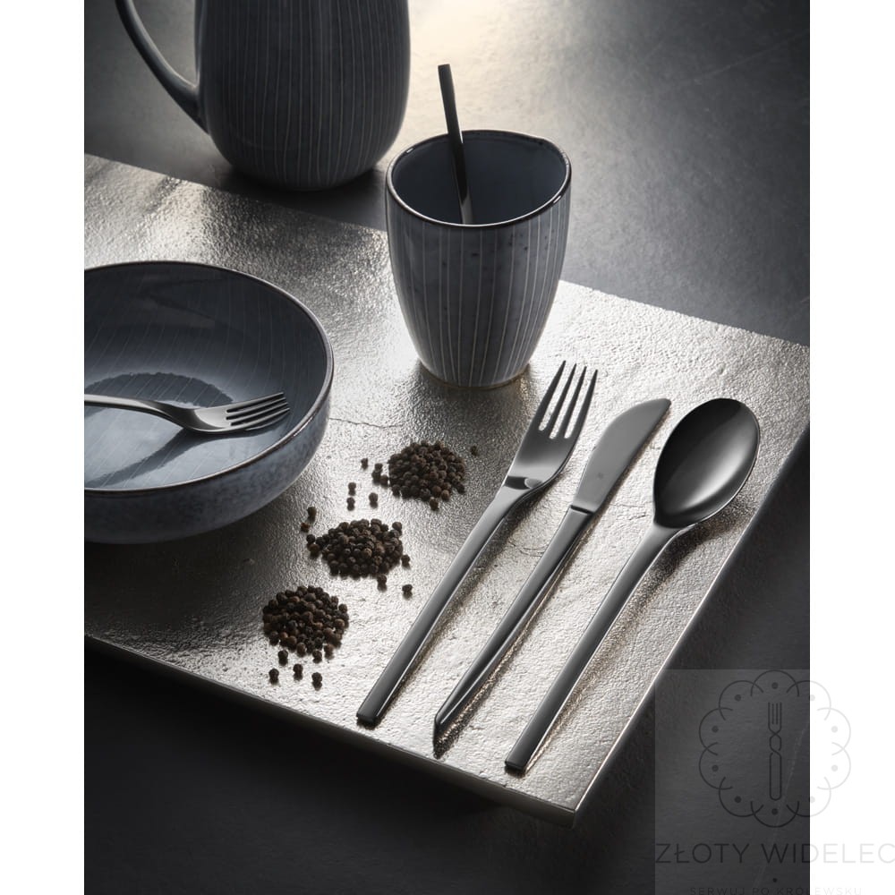 Wykonany z opatentowanej stali nierdzewnej Cromargan® 18/10, pokrytej eleganckim, satynowym wykończeniem Gun Antracite, wyróżnia się nie tylko wyjątkową trwałością, ale również ponadczasowym stylem. Jest odporny na zarysowania, kwasy spożywcze i korozję, dzięki czemu zachowuje swój wygląd nawet przy intensywnym użytkowaniu.