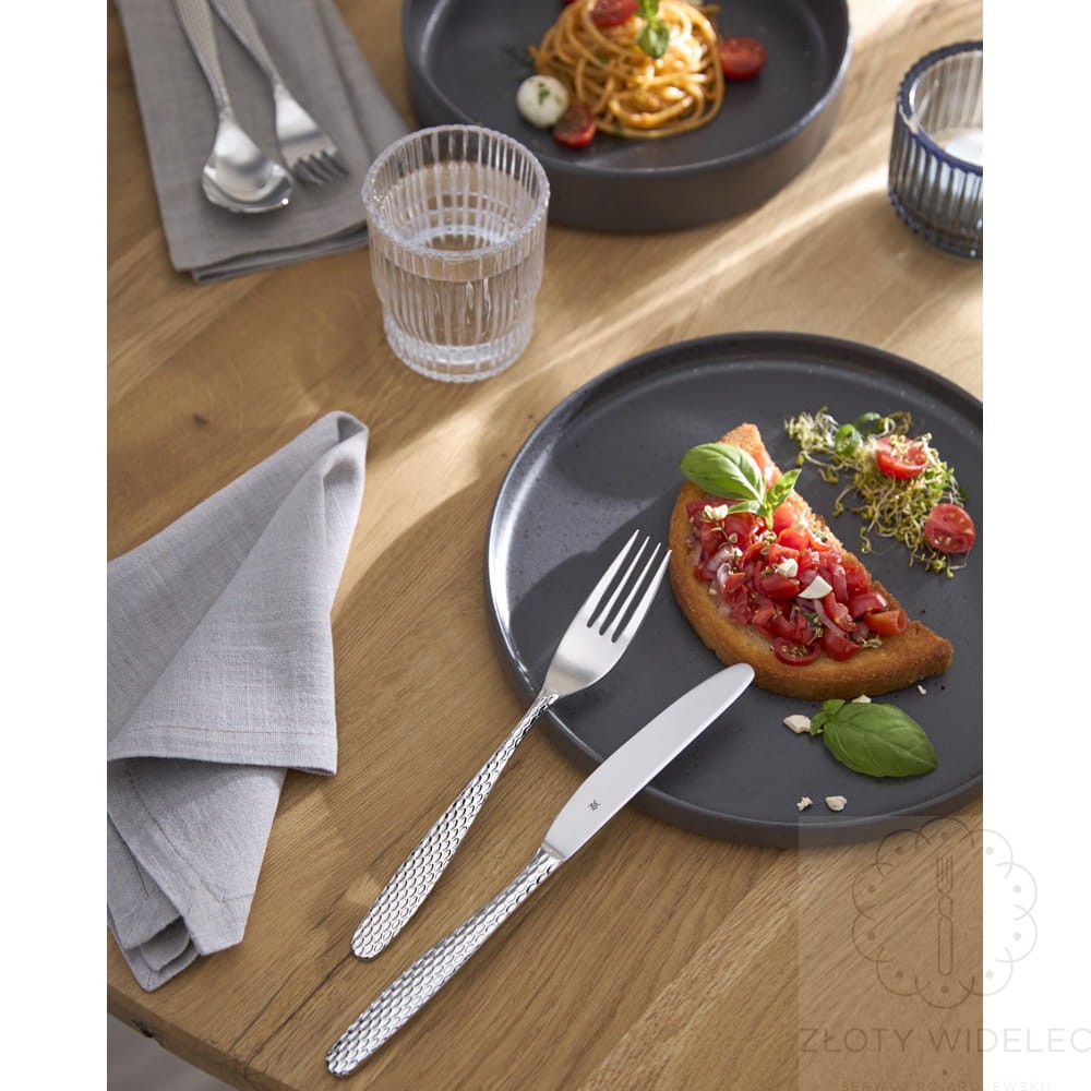 WMF Tessa to kolekcja, która łączy nowoczesny, odważny design z najwyższą jakością wykonania. Dzięki geometrycznej fakturze uchwytów sztućce te stanowią nie tylko funkcjonalny element zastawy, ale i dekorację stołu, wnosząc do aranżacji świeżość i elegancki, unikalny styl.