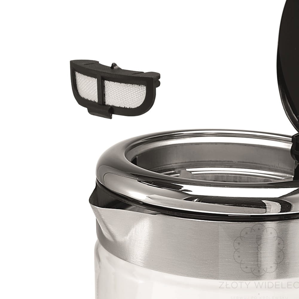 Czajnik wyposażono w szereg praktycznych rozwiązań: obsługę jedną ręką dzięki otwieraniu pokrywy przyciskiem, bezprzewodową konstrukcję z obrotową podstawą 360°, a także wyjmowany filtr antywapienny, który dba o czystość wody i długą żywotność urządzenia. Za bezpieczeństwo odpowiadają funkcje: automatyczne wyłączanie po zagotowaniu, ochrona przed przegrzaniem i włączeniem pustego czajnika.