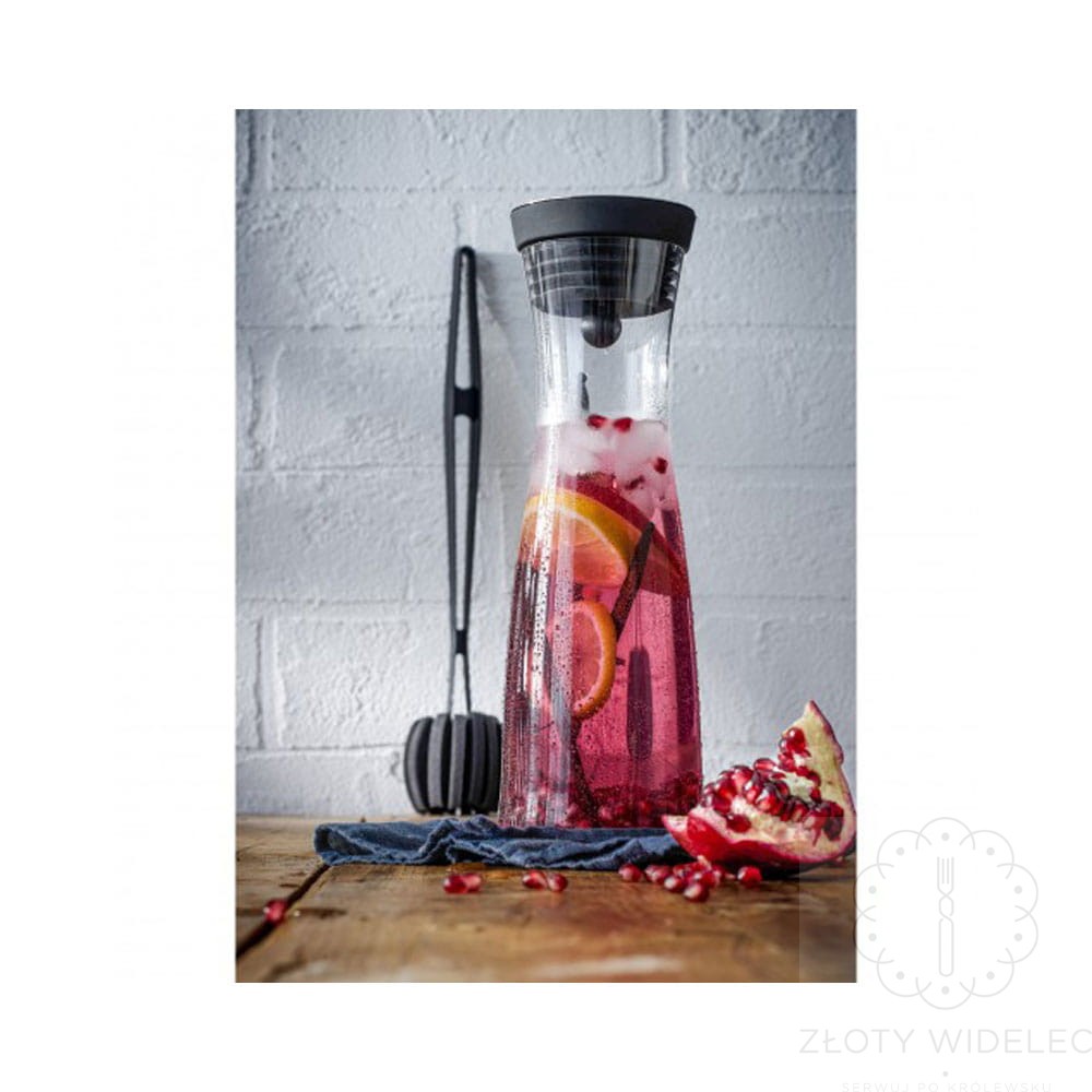 Karafka posiada wygodny, szczelny korek zapewniający łatwe nalewanie bez kapania i zabezpieczający napój przed przypadkowym rozlaniem. Szeroki otwór umożliwia dodanie do wody lodu, owoców czy ziół, dzięki czemu możesz przygotować orzeźwiające i efektowne napoje smakowe.