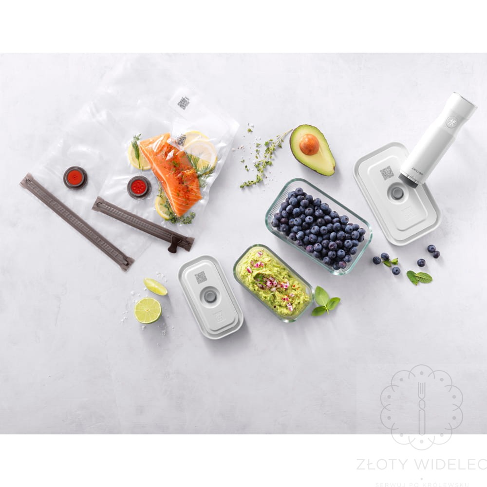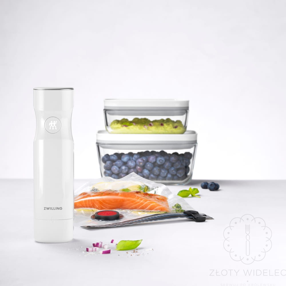 Poznaj praktyczny zestaw Zwilling Fresh & Save w wersji startowej S/M ze szklanymi pojemnikami – kompleksowe rozwiązanie do przechowywania żywności w warunkach próżniowych. Idealny dla osób, które chcą zachować świeżość produktów na dłużej i ograniczyć marnowanie jedzenia.